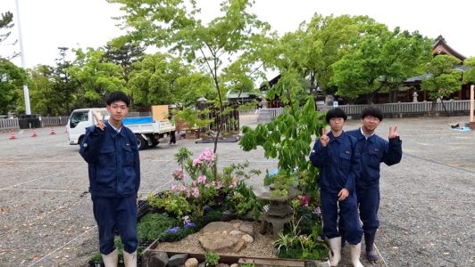 令和6年4月23日(火) 午後の実習にて、なにわの坪庭展の会場である出雲大社大阪分祠へ坪庭の施工へ行きました。 学校から高木類、低木類、下草類(積み込み量が一番多かったです)、石材(景石、灯籠、石ステージ用)を積み込んで … 続きを読む 草花造園専攻はじめての庭づくり!なにわの坪庭展の庭づくり