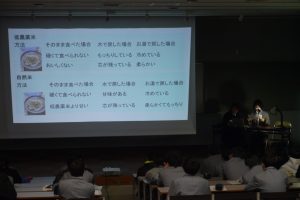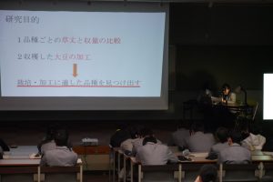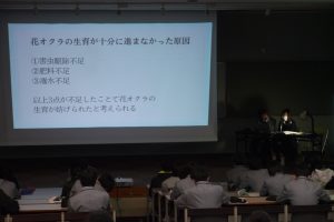 生徒たちは12月からまとめ作業に入り、直前の1週間は毎日放課後遅くまで実習室や植物工場(PC部屋)の灯りがついていました。膨大な調査データや日々の管理記録をグラフや写真で「可視化」し、制限時間内でいかに説得力のある発表ができるか。パワーポイントの作成から読み原稿の推敲まで、仲間と切磋琢磨し、限界まで磨き上げてきました。