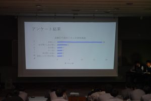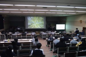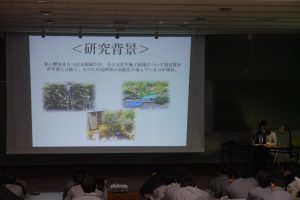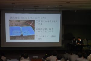 「課題研究」は、生徒自らが問いを立て、実験・実証を繰り返しながら解決の糸口を探る、学びの集大成ともいえる授業です。今年度は過去最多となる24組のプロジェクトチームが出場し、3限目より熱のこもったプレゼンテーションが繰り広げられました。