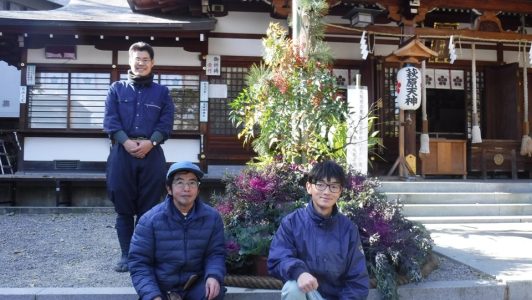 ヘビー級な門松!?草花造園専攻2024萩原神社門松設置